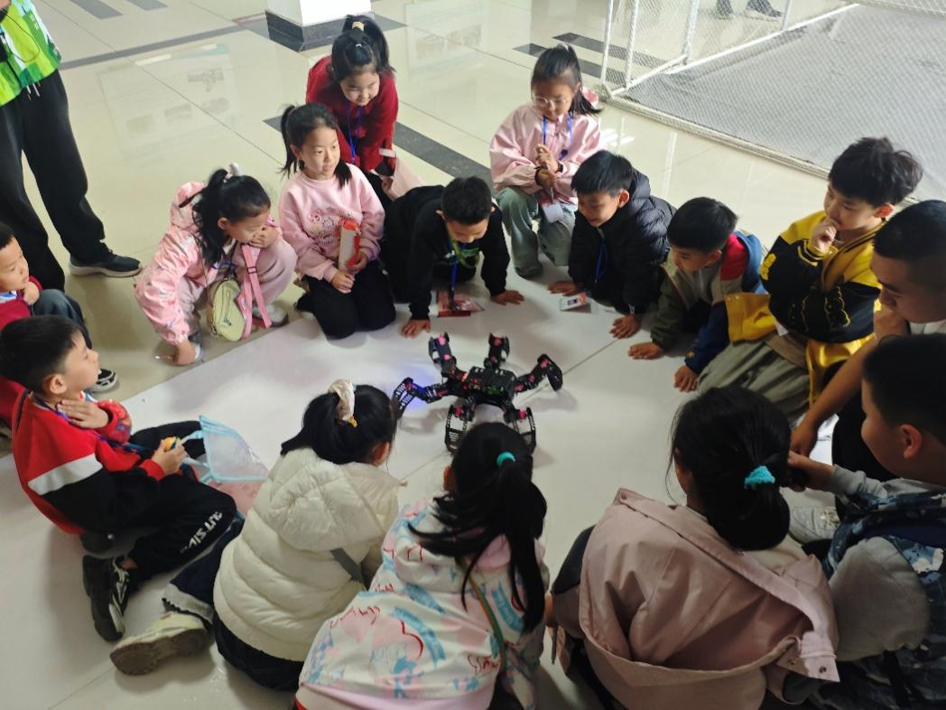 在参观环节,老师和志愿者们化身“科学讲解员”,向同学们介绍了3D打印、各类机器人、无人机及动、植物进化的相关知识,从基础科学原理到前沿技术应用,层层递进地为同学们讲解,耐心解答孩子们提出的每一个问题,让抽象的科学知识变得鲜活可感。